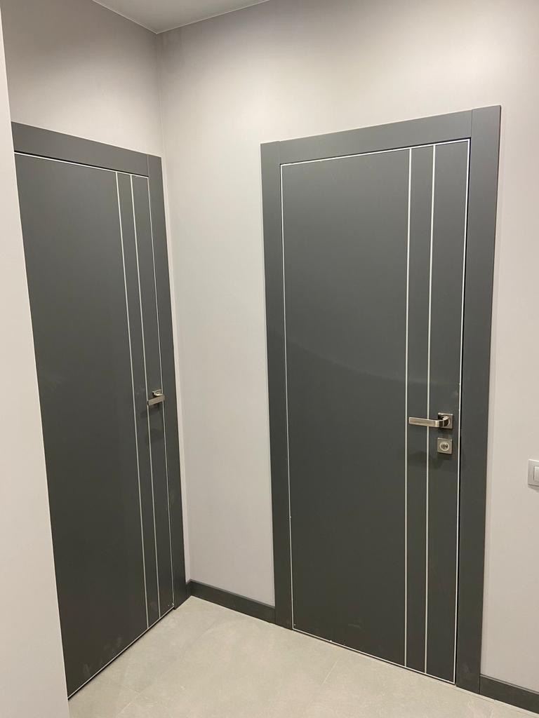 Каркасно-щитовые полотна имеют усиление в местах установки замков и петель, наполнением является тамбурат, роль основы полотна выполняют две плиты МДФ EGGER (Австрия),покрытые пленкой Renolit (Германия). Пленка приклеивается на полиуретановый клей Клейберит 702.5. и 702.8 (Германия), который устойчив к воздействию солнечных лучей.